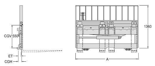 | Capacity 承載能力(kg) | Catalog Order NO 型號 | Mounting Class 安裝等級 | Opening Range貨叉調(diào)距范圍ITO(mm) | Minimum Truck Carriage Width叉車貨叉架寬度最小值(mm) | Overall Width總寬A(mm) | Fock Pocket Width適配貨叉寬度(mm) | Weight 自重(kg) | Effective 失載距ET(mm) | Horizontal Center of Gravity 水平重心CGH(mm) |